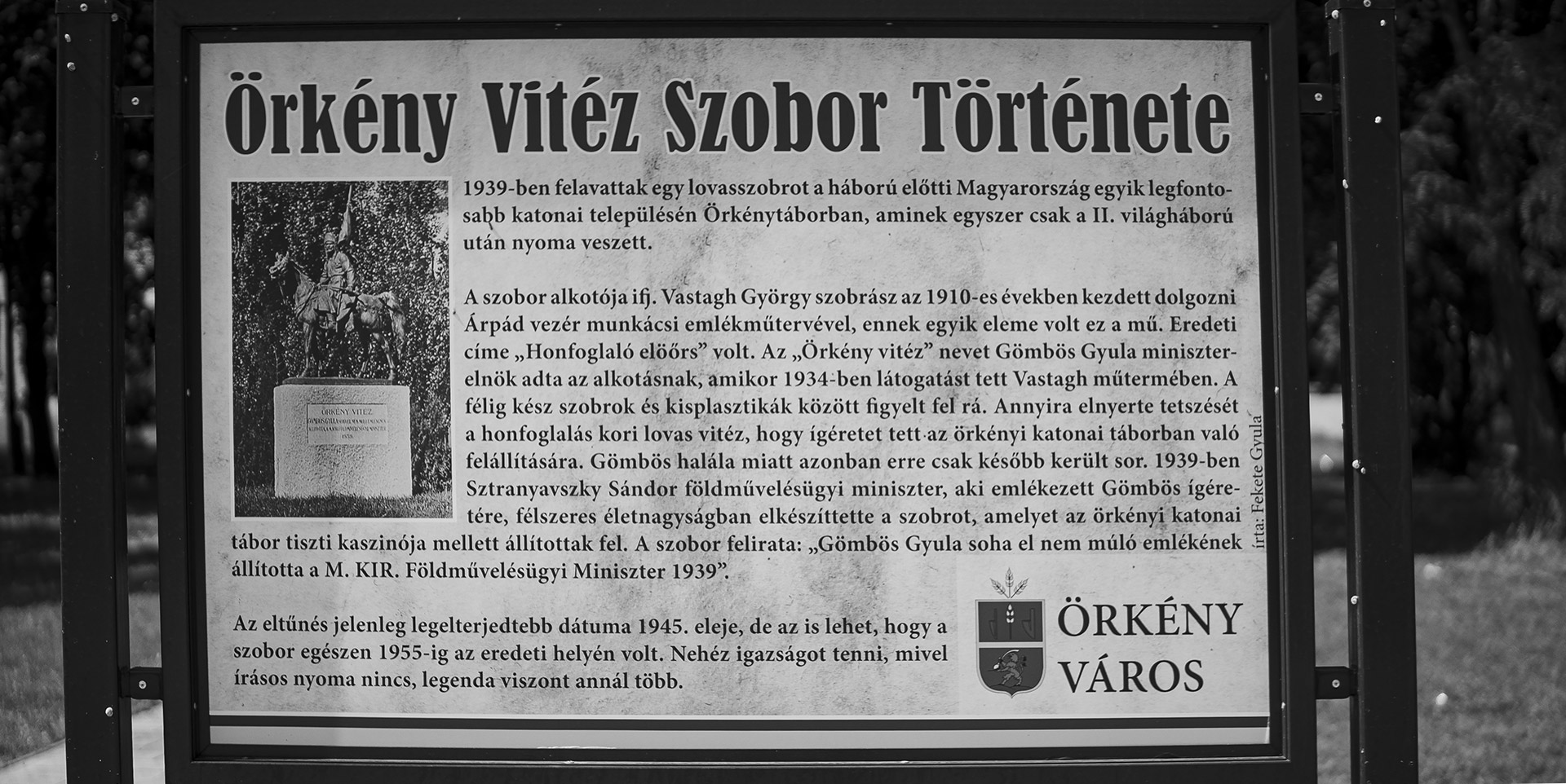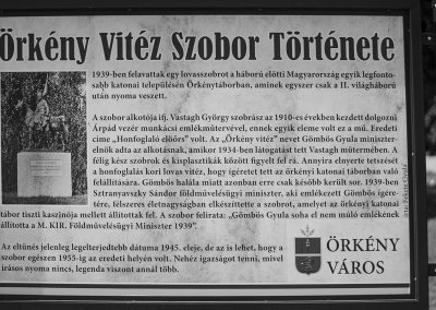 A mű eredetileg annak lovasszobor-sorozatnak volt a része, amelyet ifj. Vastagh György az 1910-es években, az Árpád vezér munkácsi emlékműtervével kezdett el készíteni. Az „Örkény vitéz” nevet Gömbös Gyula miniszterelnök adta az alkotásnak, amikor 1934-ben látogatást tett Vastagh műtermében. Annyira elnyerte tetszését a honfoglalás kori lovas vitéz, hogy ígéretet tett az örkényi katonai táborban való felállítására. Gömbös halála miatt azonban erre nem került sor. 1939-ben Sztranyavszky Sándor földművelésügyi miniszter, aki emlékezett Gömbös ígéretére, félszeres életnagyságban elkészíttette a szobrot, amelyet az örkényi katonai tábor (ma Táborfalva) lovardája mellett állítottak fel.