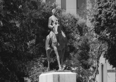 Amikor nyilvánvalóvá vált, hogy a földalatti vasút építését évekkel el kell halasztani, a bronzba öntött, ötnegyedes életnagyságú Sportlovast a Műcsarnok lépcsősorának jobb oldali mellvédjén helyezték el, majd 1958-ban az V. kerületben, a Szende Pál utca és a Dunakorzó sarkán állították fel. Húsz év múlva, a háborúban elpusztult egykori Ritz üresen álló telkén létesülő Fórum Szálló építése miatt ismét költöznie kellett a levett sapkájával köszönő Sportlovasnak. 1980-ban a Margit híd budai hídfője melletti, napjainkban már Germanus Gyula nevét viselő parkban nyert – talán immár végleges – elhelyezést.