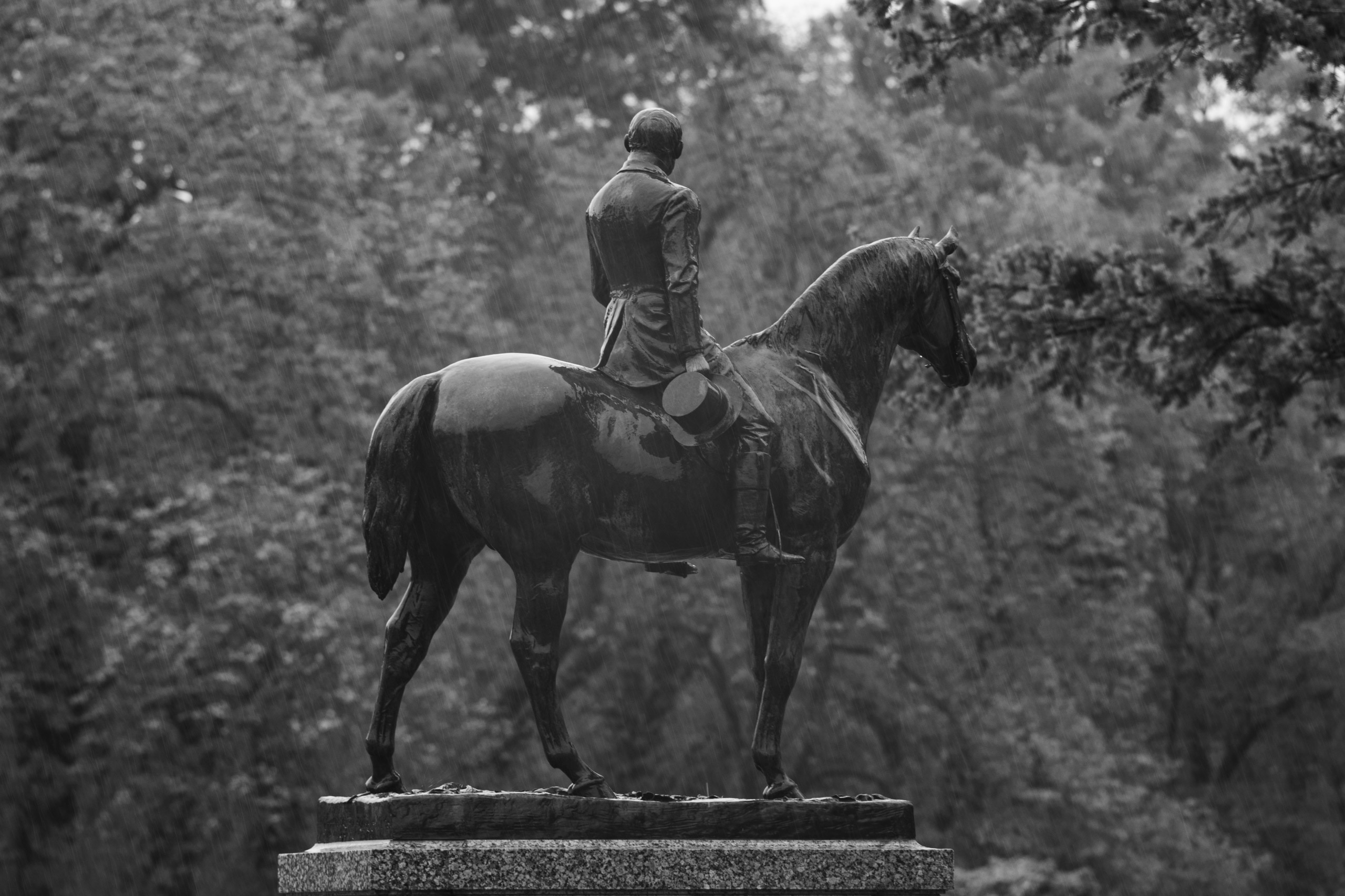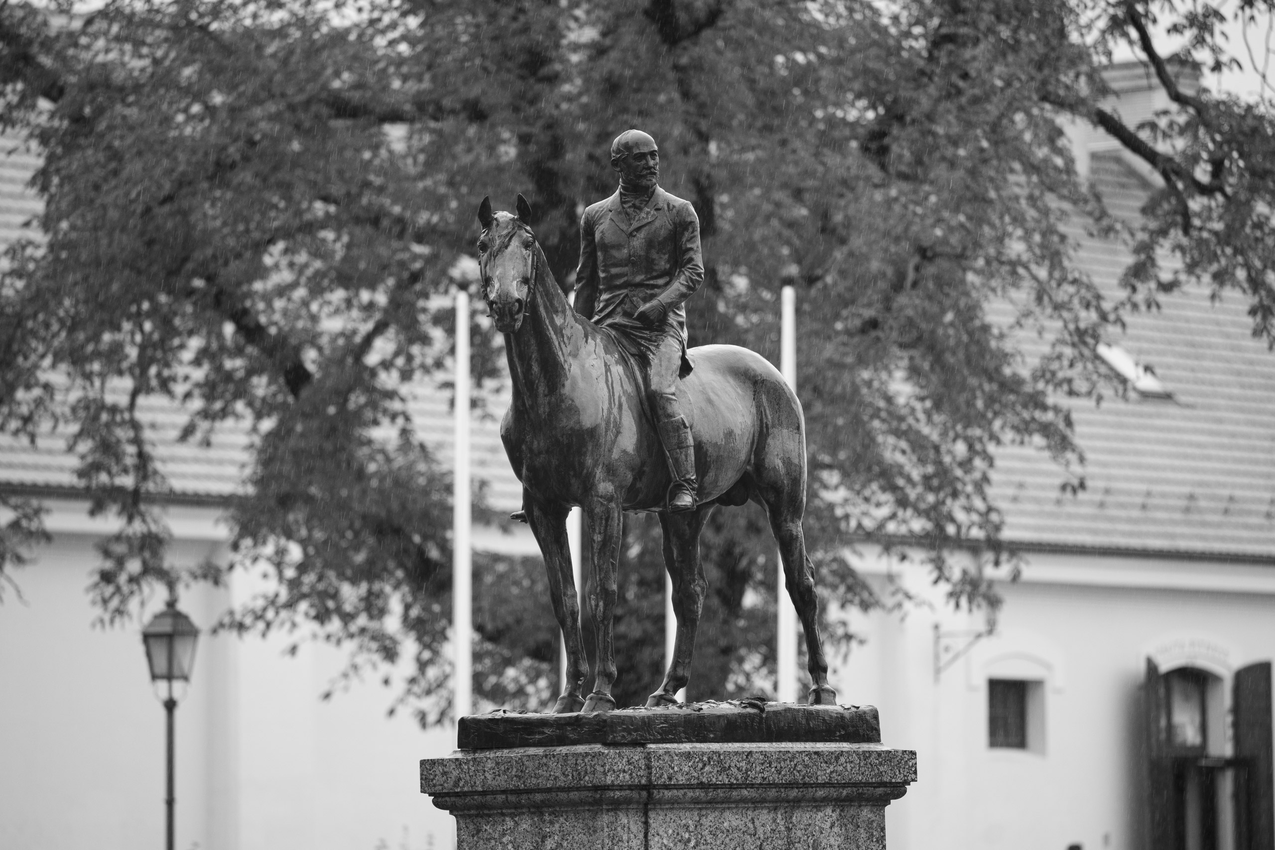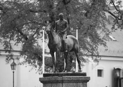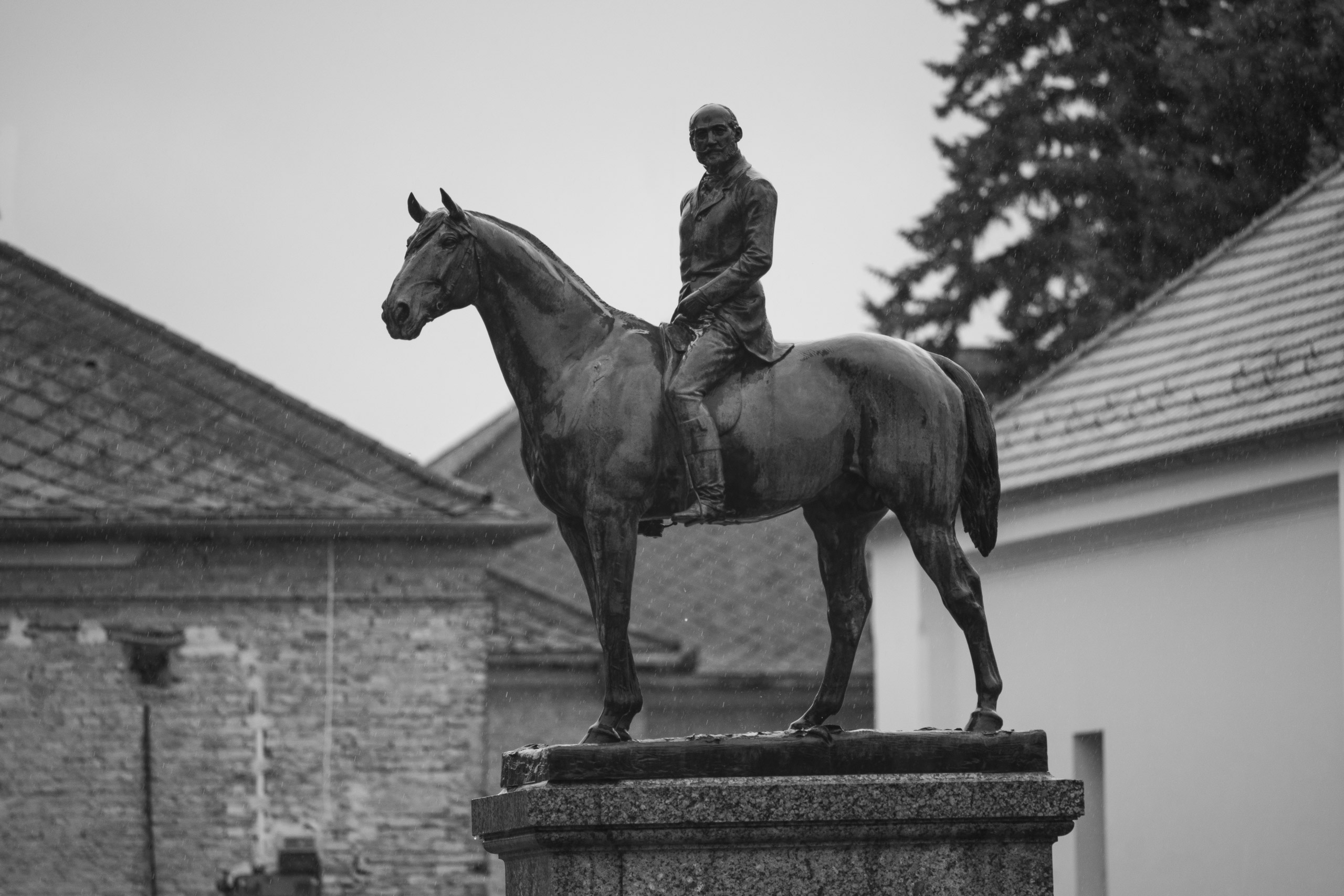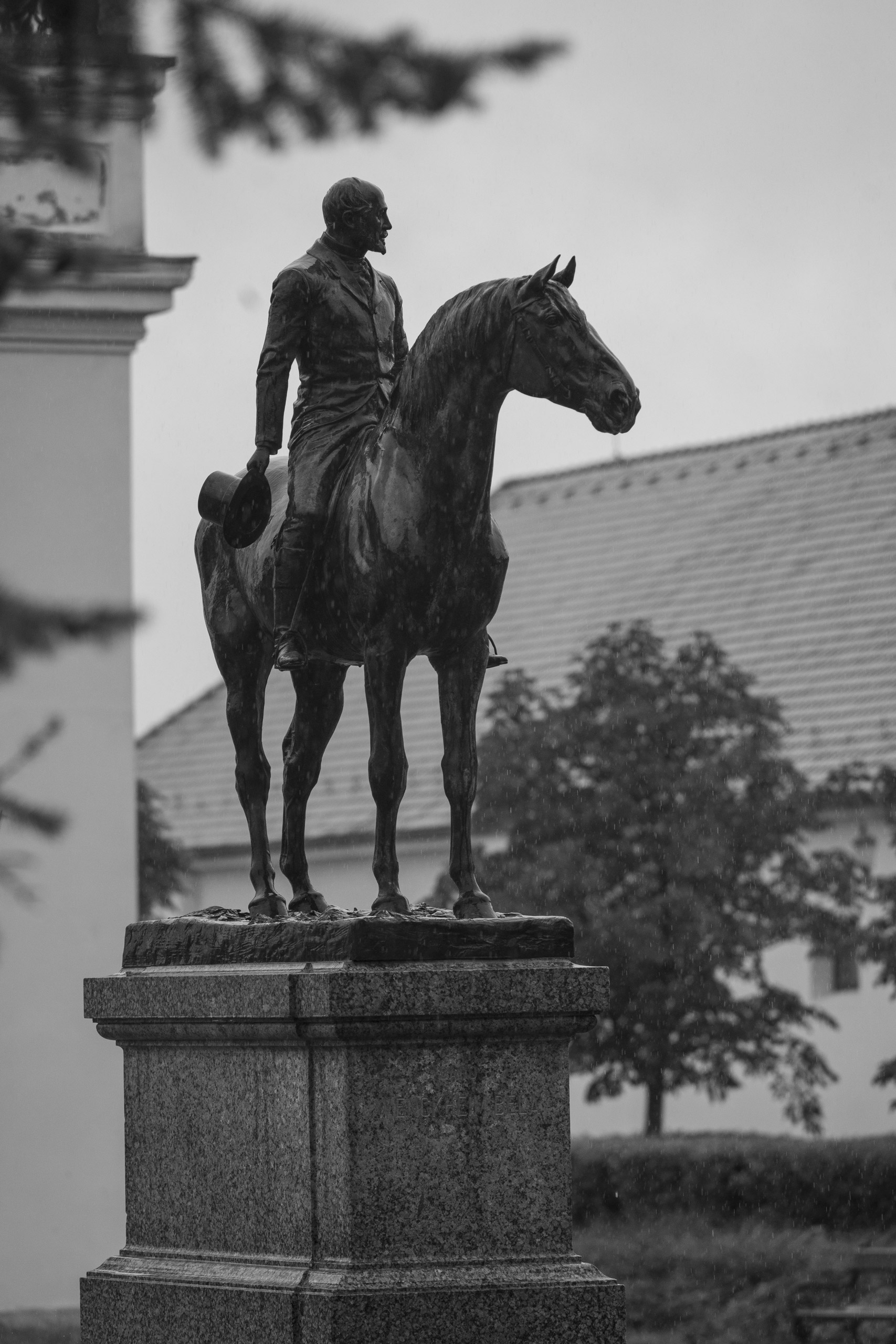 A híres kisbéri ménes fénykorában működött az un. ‘Ötös tenyészbizottság’, amely Ferenc József császár által a telivértenyésztés fejlesztésére 1860-ban létrehozott alap kezelését végezte. Az alap kamataiból vásárolták Angliában és a kontinensen azokat a telivéreket, melyekkel megalapozták több kiváló telivér család meghonosítását. Az öt főből álló bizottság elnöke elnöke báró Weinckheim Béla volt, akinek az 1870-es évek végén klasszicista emlékművet emeltek a ‘Pokol’-domb tetején. Az emlékmű előtt állították fel 1901-ben Fadrusz János híres lovasszobrát, melyet az újpesti Beschorner ércöntőgyárban öntöttek. A szobrot később a kastély és a lovarda között kialakított térre helyezték át.