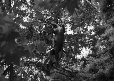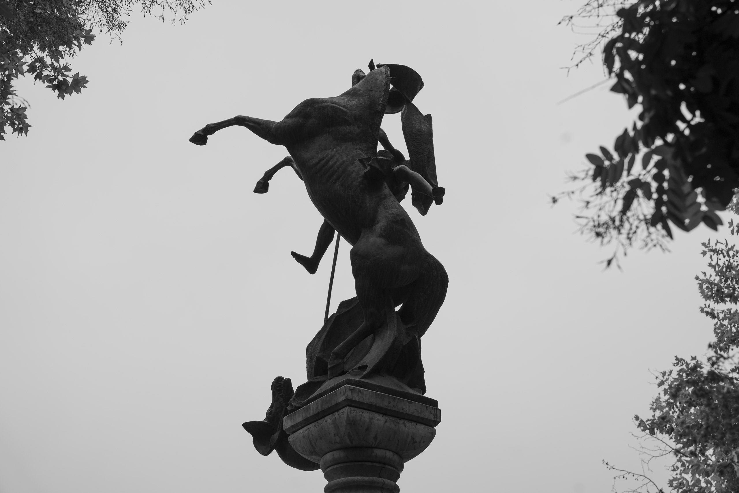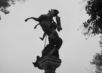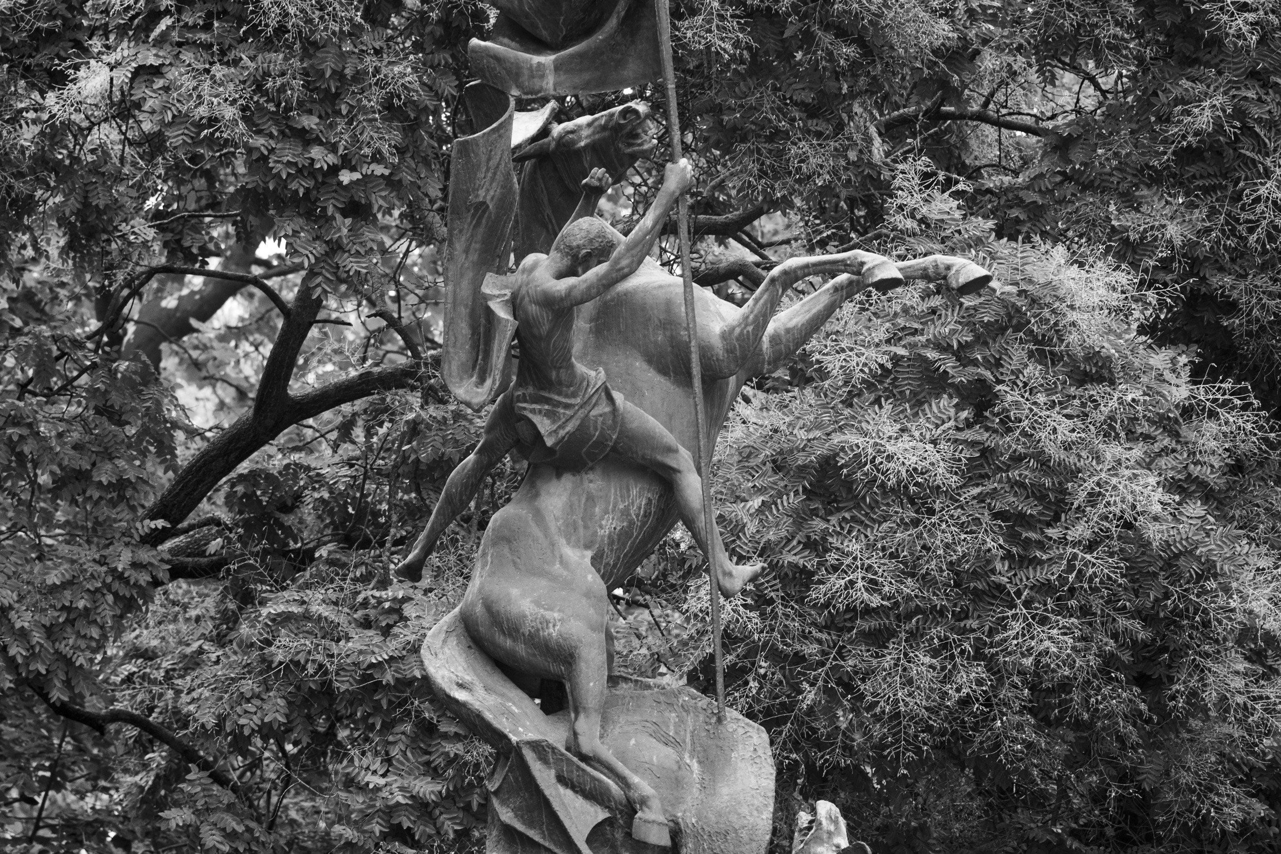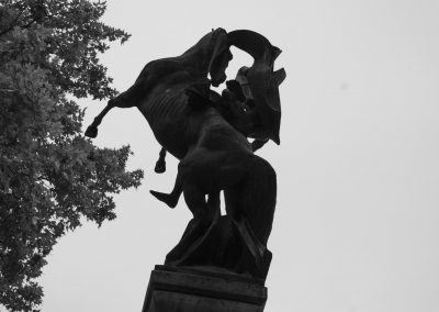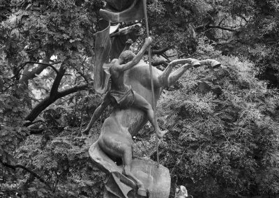 Márvány oszlopon a sárkányt legyőző Szent György bronz szobra látható, az oszlopon több bronzgyűrűn feliratozva az áldozatok nevei olvashatók
