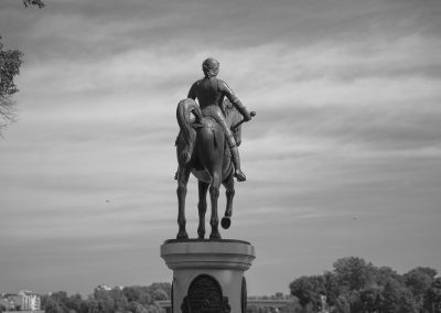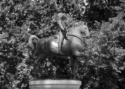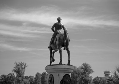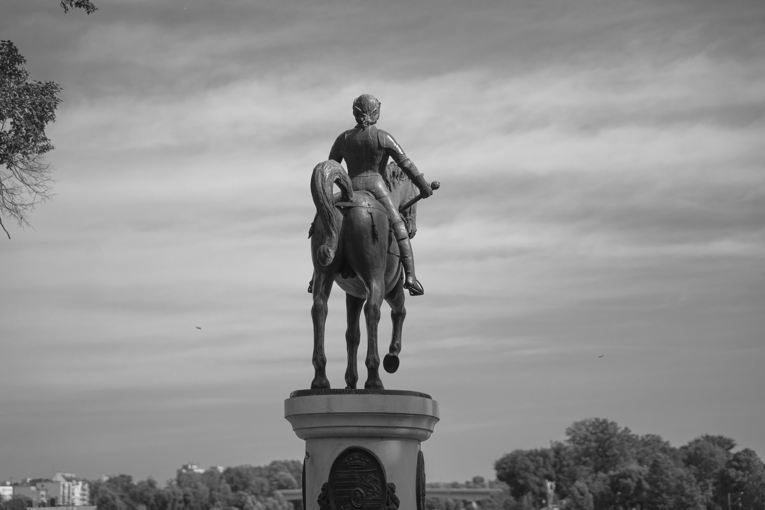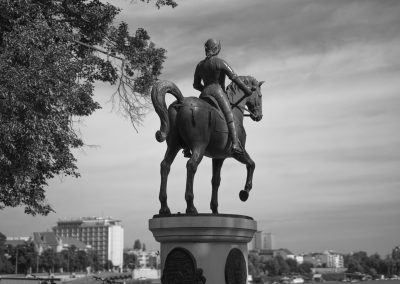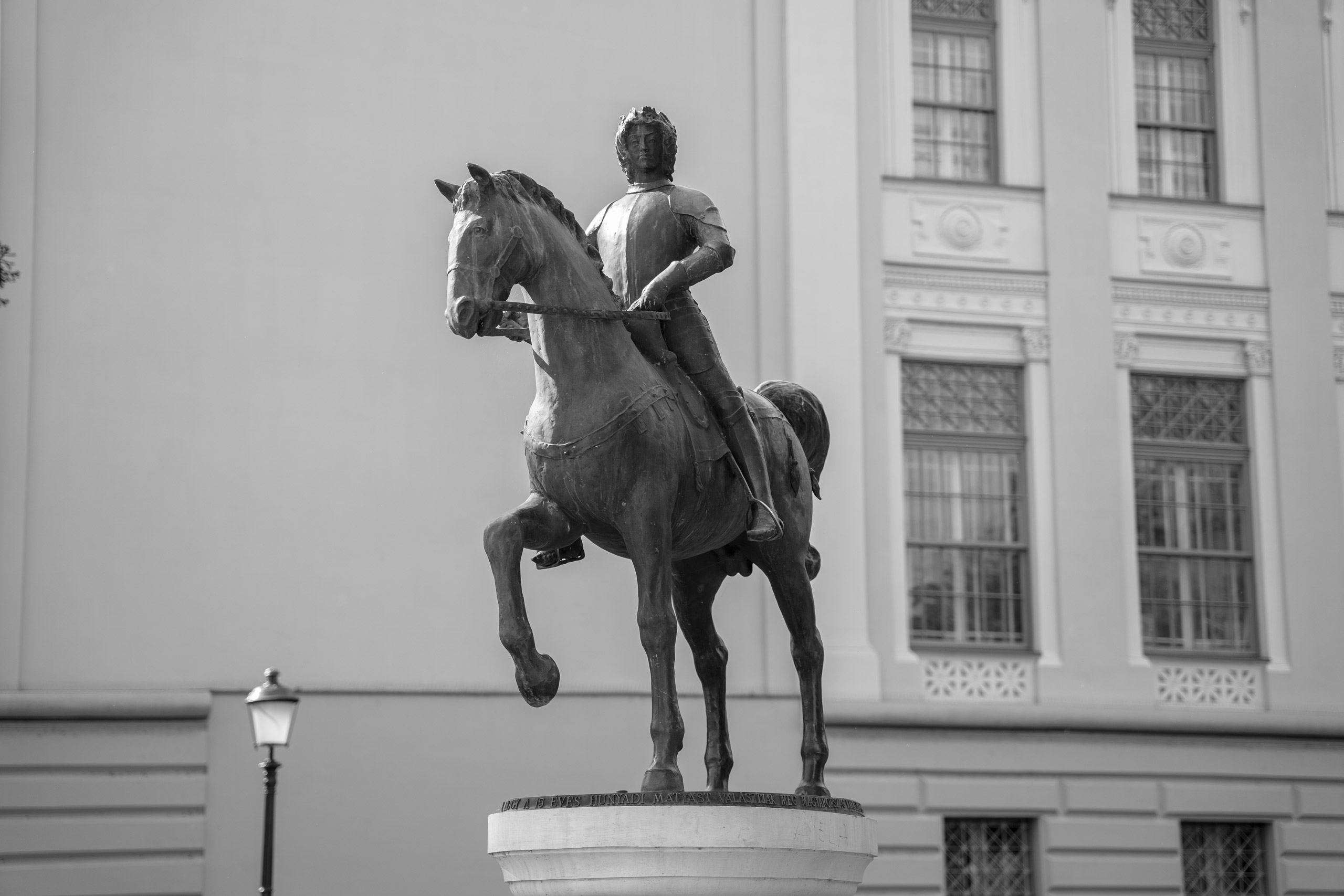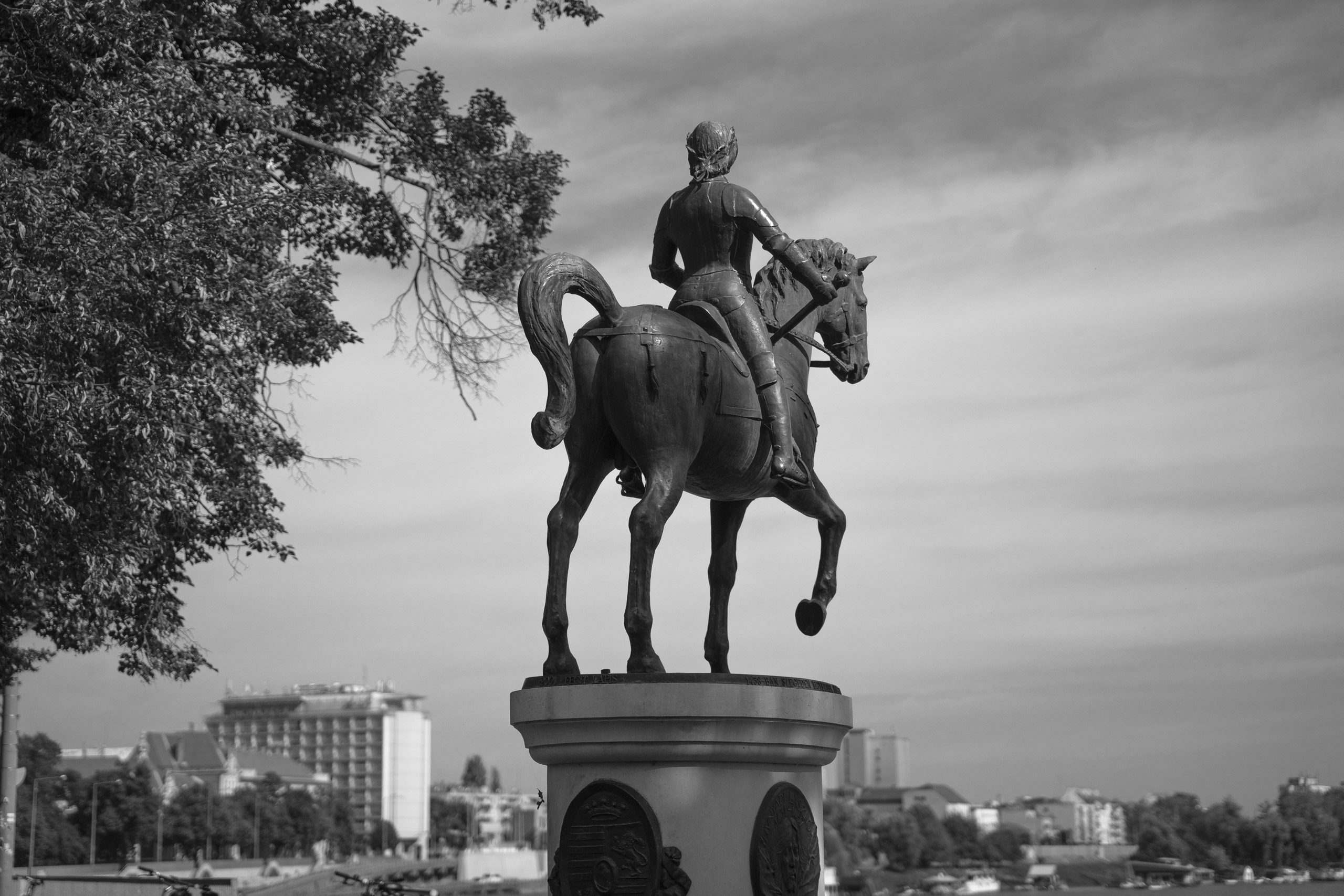 A szobor a fiatal 15 éves Mátyás királyt ábrázolja, akit 1458-ban Szegeden választottak meg magyar királynak. A negyed életnagyságú szobor a Tisza felé van tájolva. Az ifjú teljes páncélban bal kézzel a kantárt tartva, jobb kezével, jogarral üget a lován.