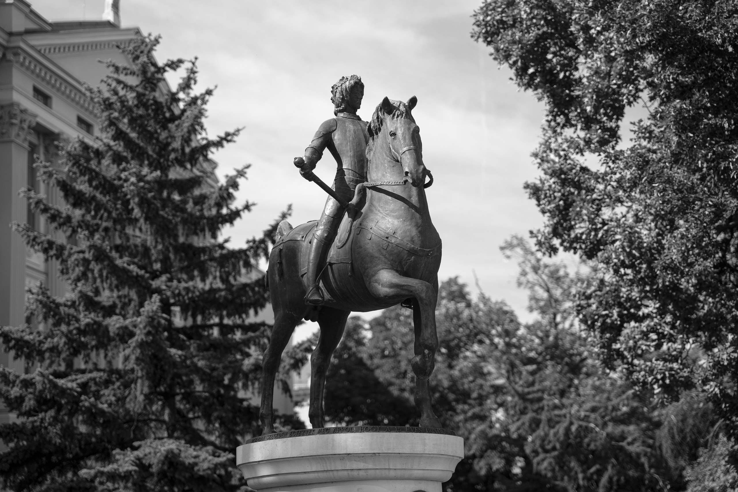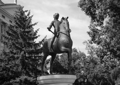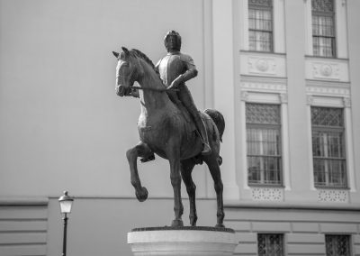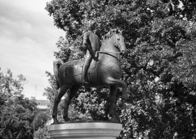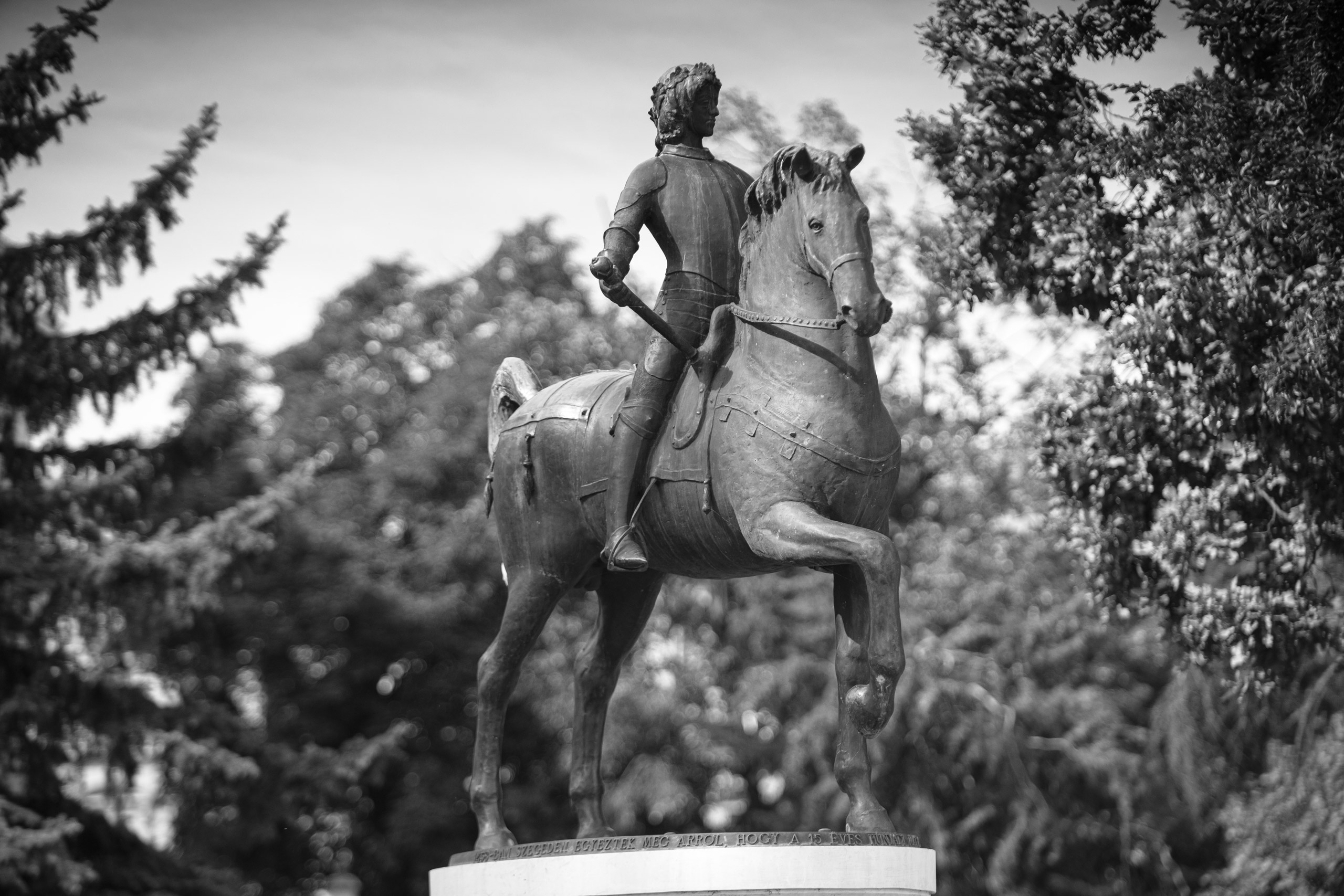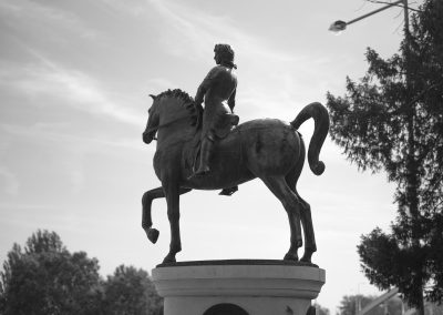 2001. augusztus 20-án állították fel Móra Ferenc Múzeum és a vár maradványa közötti területen Hunyadi Mátyás Lovas szobrát, Lapis András alkotását. A szobor egy méteres kő ellipszis alaprajzú fehér posztamensen áll, amelyet körben négy bronzplasztika övez, amely Józsa Gábor szegedi ötvös szobrász alkotása.